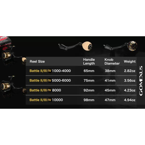 • 【More Torque】Gomexus handle is designed longer than the stock handle, which provides more torque to fight. Once used, you will easily win the battle with big fish.